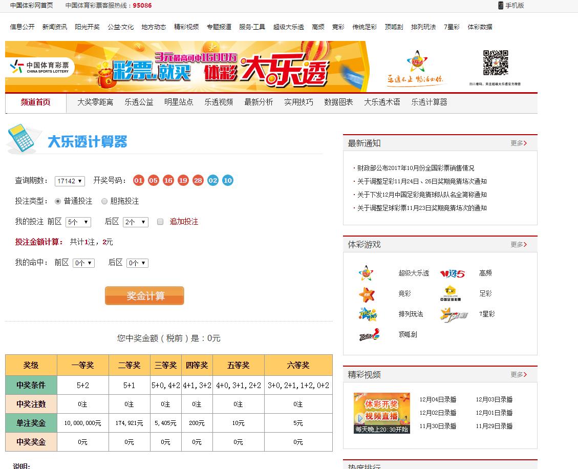 同样的,包括福利彩票的“双色球”在内的体育彩票、福利彩票的乐透型玩法都可以找到相应的计算器来计算自己的投注方案中奖情况。使用方法也是一样的,在网上直接搜索相应玩法的计算器即可。当然登录彩票机构的官网更专业、更准确,即可以进一步了解玩法规则和特点,又可以适当验证计算器的计算结果是否正确。
